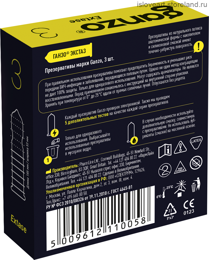 Презервативы анатомической формы с точечной и ребристой структурой. Материал: латекс Толщина стенки 0,045 мм. Длина 18,5см Ширина: 5,3 см Количество в упаковке:3шт Страна: Великобритания